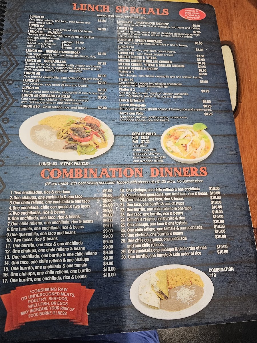 All the food had flavor, our waiter was the best, not to busy as we went right before the dinner crowd, plenty of parking, outside seating, prices fair, portions were plenty, drinks good, open 7 days a week, they have vegetarian options if that's your thing. Always busy when I drive by and now I know why. Highly recommend! I ate the Trio Burritos (chicken, steak & shrimp) excellent flavors, the Texas Fajitas- plenty for one & flavorful and third (can't remember the name ) but delicious!